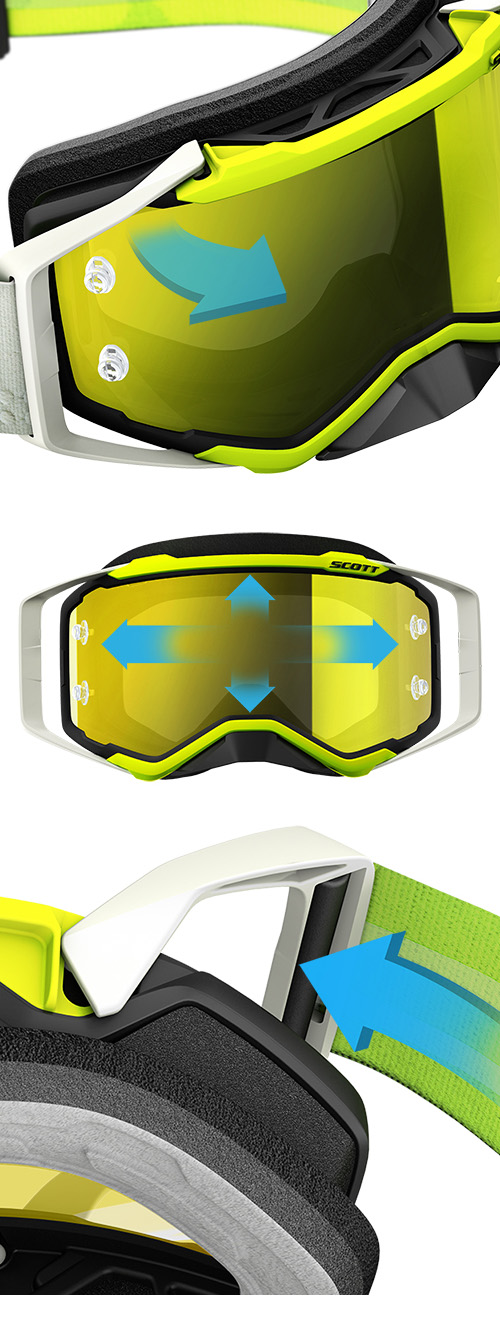 Prospect er et nytt høydepunkt blant snøscooterbriller og har aldri har noe lignende vært på markedet før. Det gir føreren et maksimalt synsfelt på grunn av den ekstra høyden på linsen. I tillegg har det en innovativ SCOTT lens-lock system som gjør at linsen sitter i rammen uansett hvilken innvirkning som kommer fra utsiden. For å sitte godt på hjelmen er den utstyrt med en ekstra bred, no-slip silikon stropp. Denne stroppen sammen med utriggerne bidrar til god integrering på hjelmen.