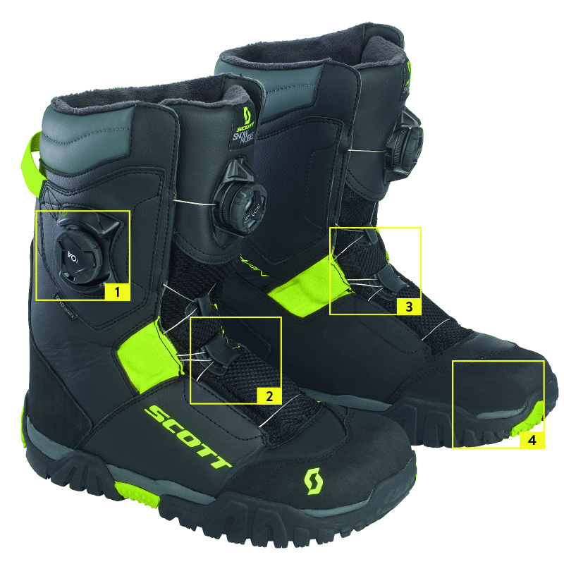 SCOTT Kulshan Pro er en premium snøscooterstøvel, designet for de som krever det beste. Et Dual Zone Boa® Fit System gir deg rask og optimal stramming. Den vanntette og pustende DRYOsphere membranen vil holde føttene tørre, mens 3M™ Thinsulate™ isolering holder dem varme uansett vær. Med andre førsteklasses funksjoner som en lav profil, fast fôr, en Full-Flex støpt tunge, ErgoLogic innersåle og en SCOTT Ice Grip såle gir denne skoen deg en fantastisk komfort og suveren støtte. Proversjonen har også D3O for økt komfort og sikkerhet.